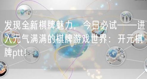 发现全新棋牌魅力,今日必试——进入元气满满的棋牌游戏世界:开元棋牌ptt!